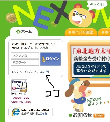上記の時間帯にログインを試みた際、マビノギとネクソンHP両方にて