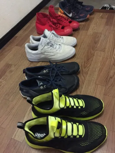- 真ん中のスエードReebok。Converseで一度敗北した「ランニングシューズではないクツを履く挑戦」のリベンジで購入。履き心地良し。すごいぞReebok。さすがだReebok。Converseが生み出してくれた「スニーカーというクツへの疑念」を打ち払ってくれた。