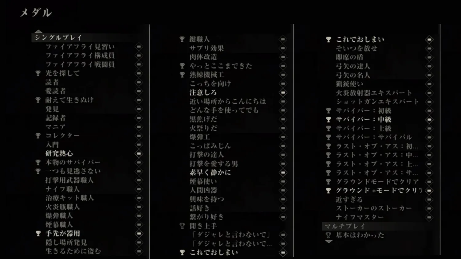 まあ、そもそも The Last of Us のトロフィーは “マルチプレイ” もやらないとコンプできないので、はなからコンプするつもりはなかったのだけども。