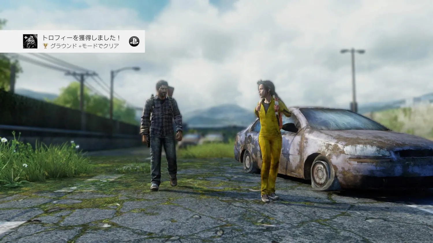 こちら↑はジョエルの “格子シャツ (紫)” とエリーの “ジャンプスーツ” の最高難易度報酬コーデ。 (トロフィー部分は合成ね)