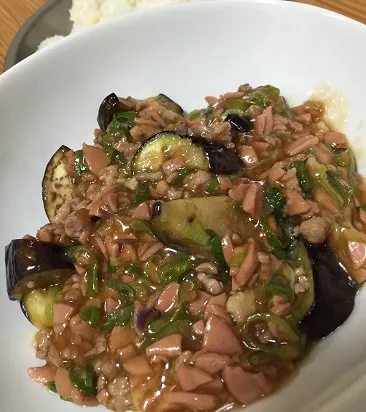 - 3. とろみがついた頃に茄子(あるいは豆腐)を追加