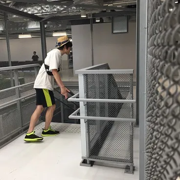 空港にて「ここ、バイオハザードのステージにありそう!」「この金網の向こうでNPCが殺されるんですね、わかります」と盛り上がり撮影する俺たち。