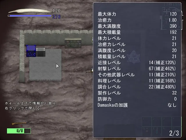 とはいったものの見どころは人類文化が壊滅したフィールドを駆け回って魔物連中を銃で吹き飛ばす2Dアクションにあろう。戦闘の難易度はわりと高めと感じた。ガンガン死んだ。