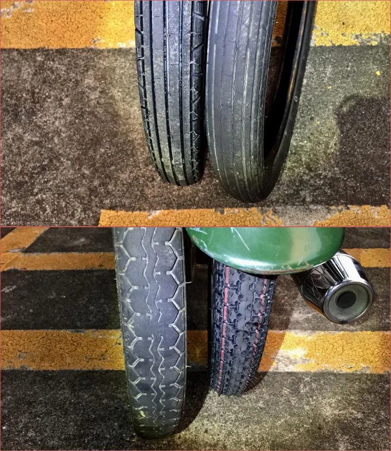 - 友達: スーパーカブの純正タイヤだよ。べつに DUNLOP でもええよ。