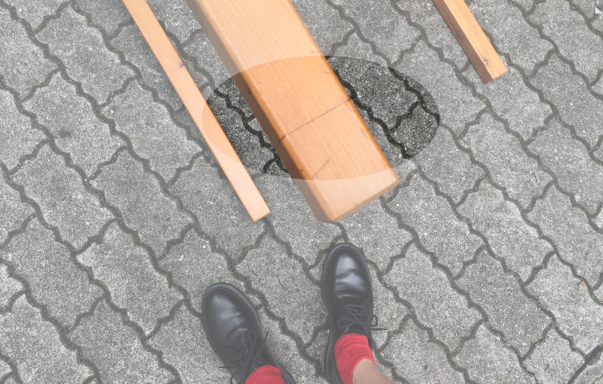 机の脚を切る