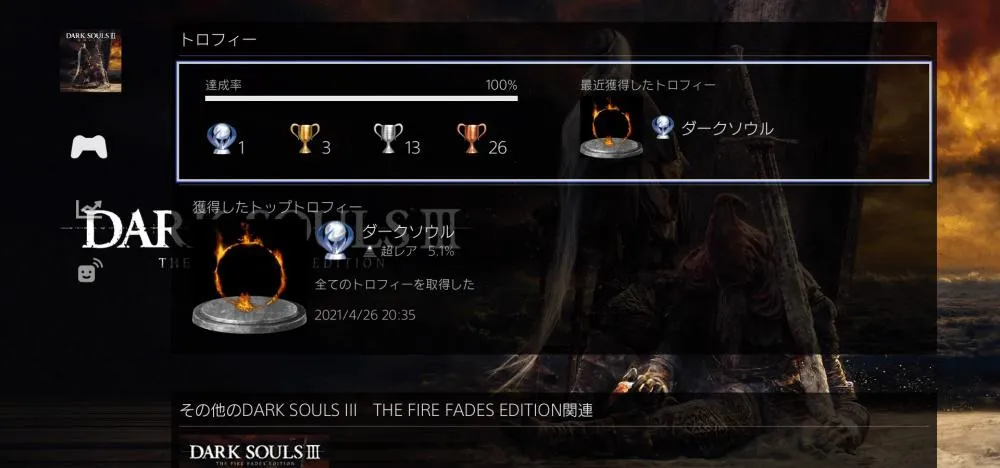 - (2021-04-27)ダークソウル3 トロコンまで(本記事)