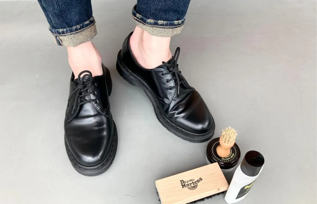 三ヶ月前に手に入れた Dr.Martens のことが気に入り、週5くらいで履いている。いやこれだけ革靴を低評価している緑さんがヘビーローテーションしているのだから、自分でもよくわかる、どうやらこの子の見た目は、ぼく的に相当ツボみたいだ。手入れをしつつ、楽しんで履いているよ。三ヶ月間履き続けて、違いが目視できるようになってきたので、経年変化記事を書いてみる。まずこれ↓が三ヶ月前で……