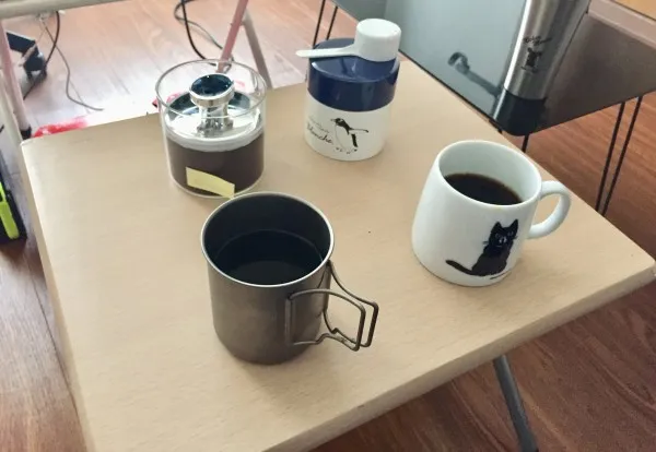 でもペットボトルにコーヒーを淹れるわけにはいかないので、彼女らのマグを借りており、一方で自分用のマグをずっと探していたんだよな。そしてとうとうたどり着いたのがチタンマグという選択肢。