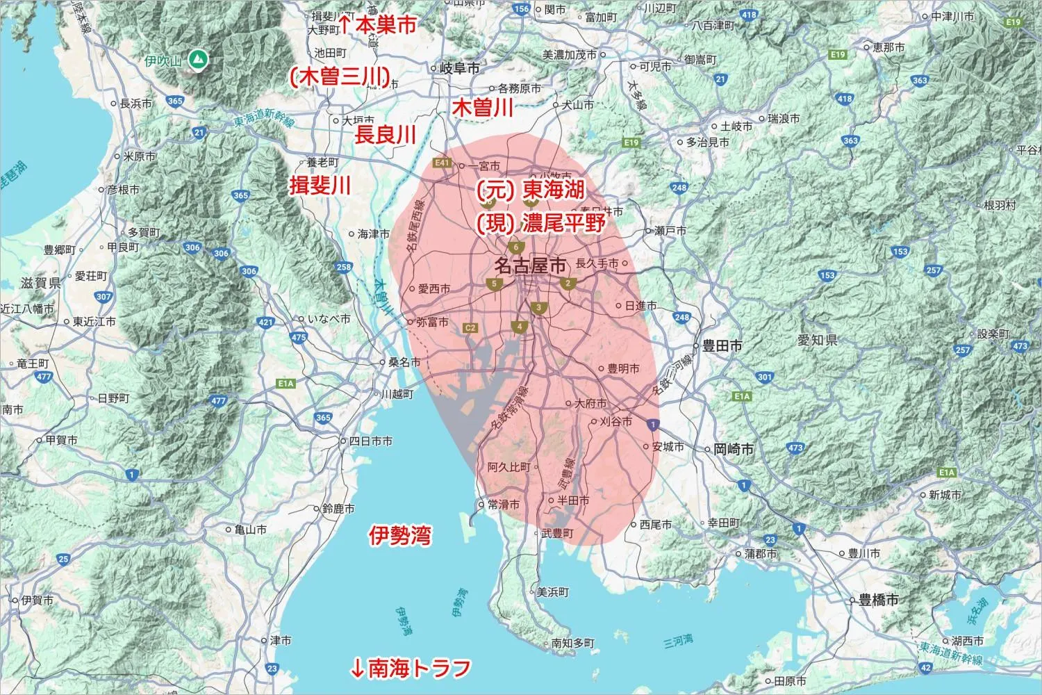 こういう濃尾平野の地図を見るとき思うこと