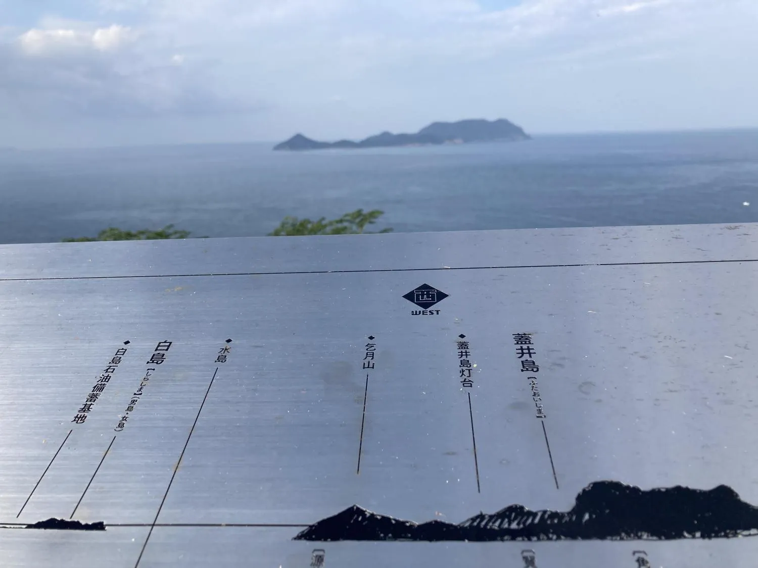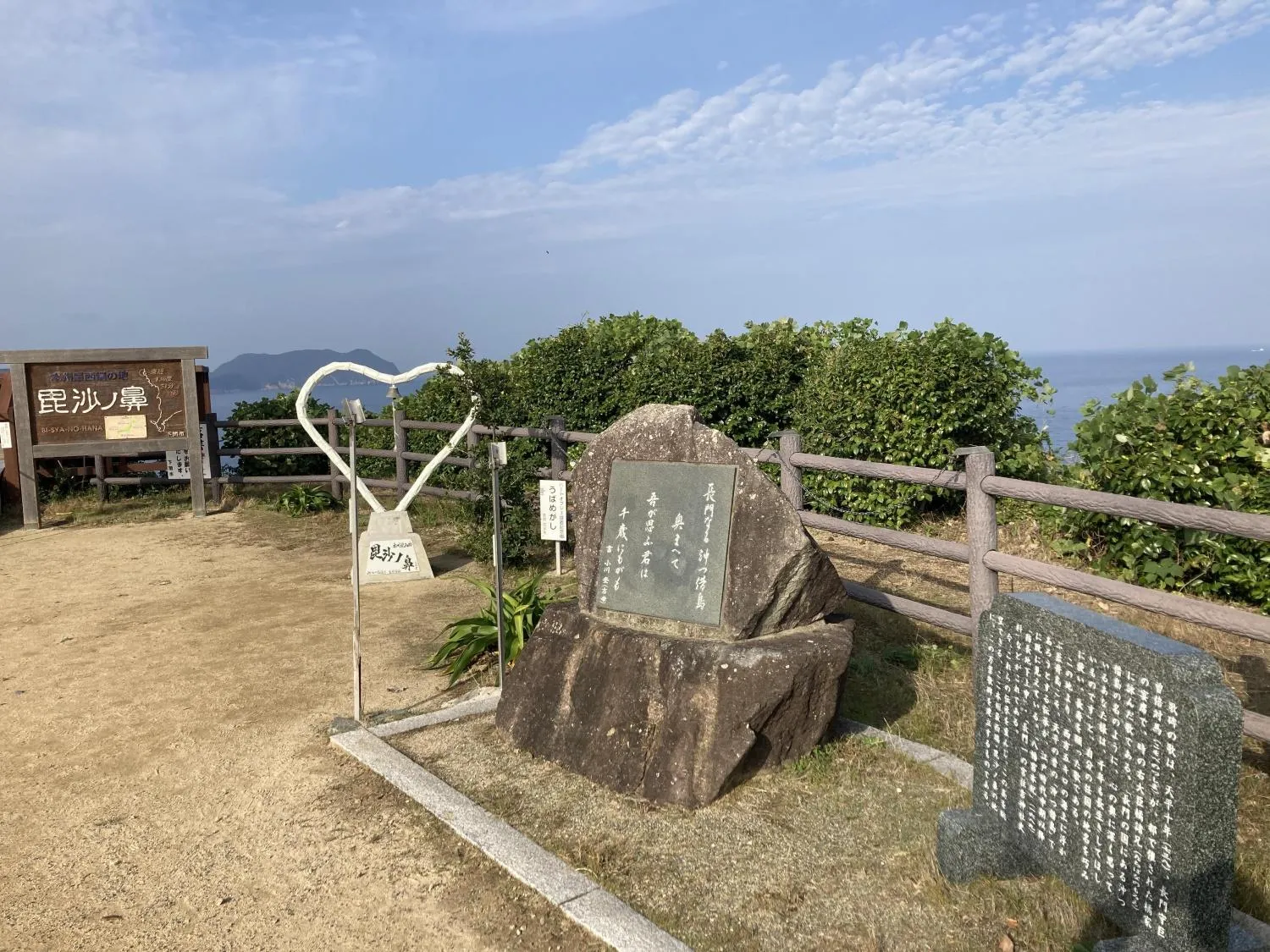 ……岬から見ることができる、あの蓋井島 (ふたおいしま) らしいぜ、解説碑によると。心の中の、あの島までの距離くらいの深いところに、相手のことを思っていたってことね。雅ではないですか。
