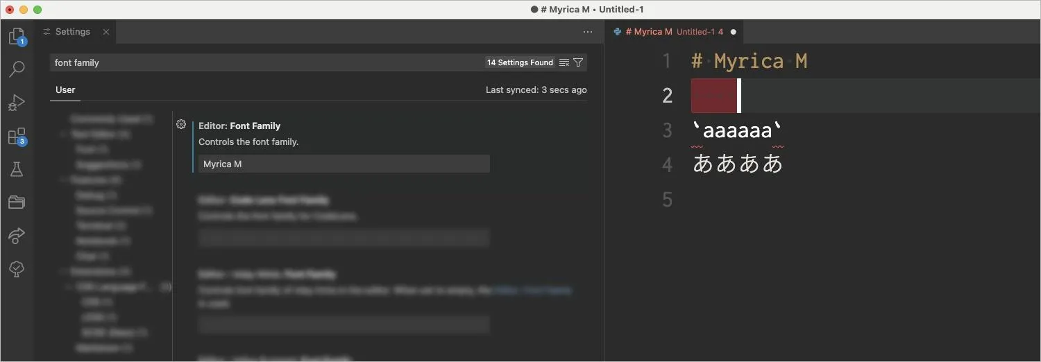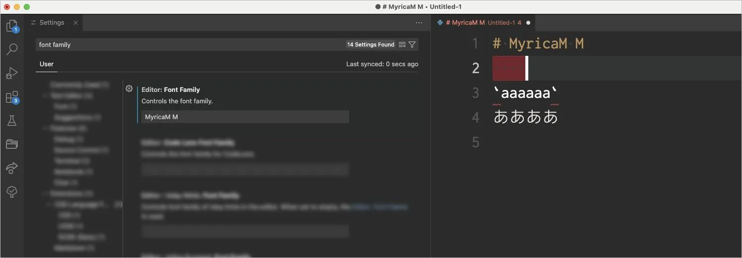 Mac においても Windows においても、 Myrica M, MyricaM M, Source Han Code JP のどれかをお好みで。